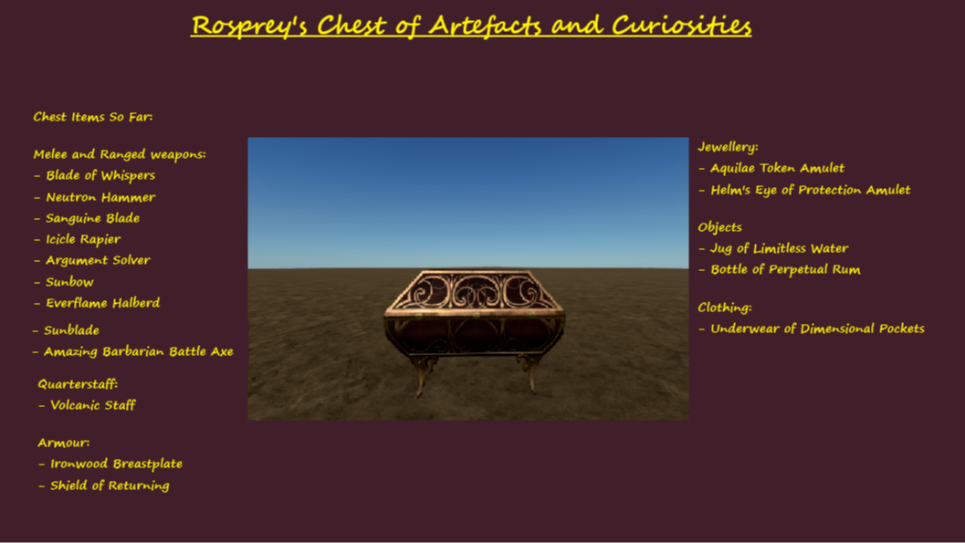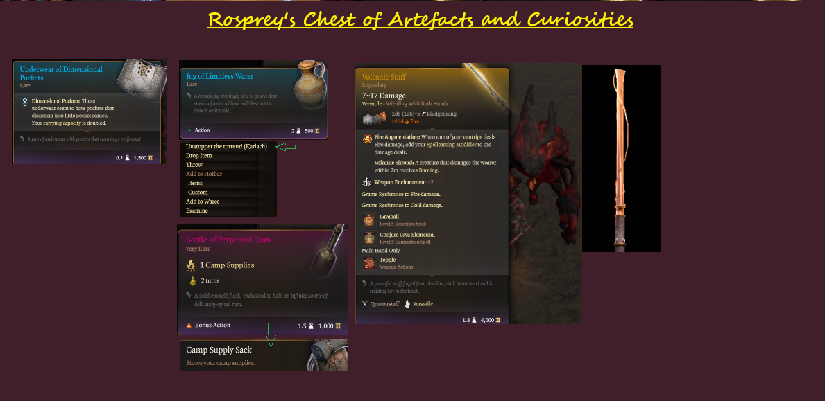 - 永续朗姆酒瓶(无限朗姆酒瓶)- 收集时会添加到营地补给包中。可以创建巨大的酒精池。