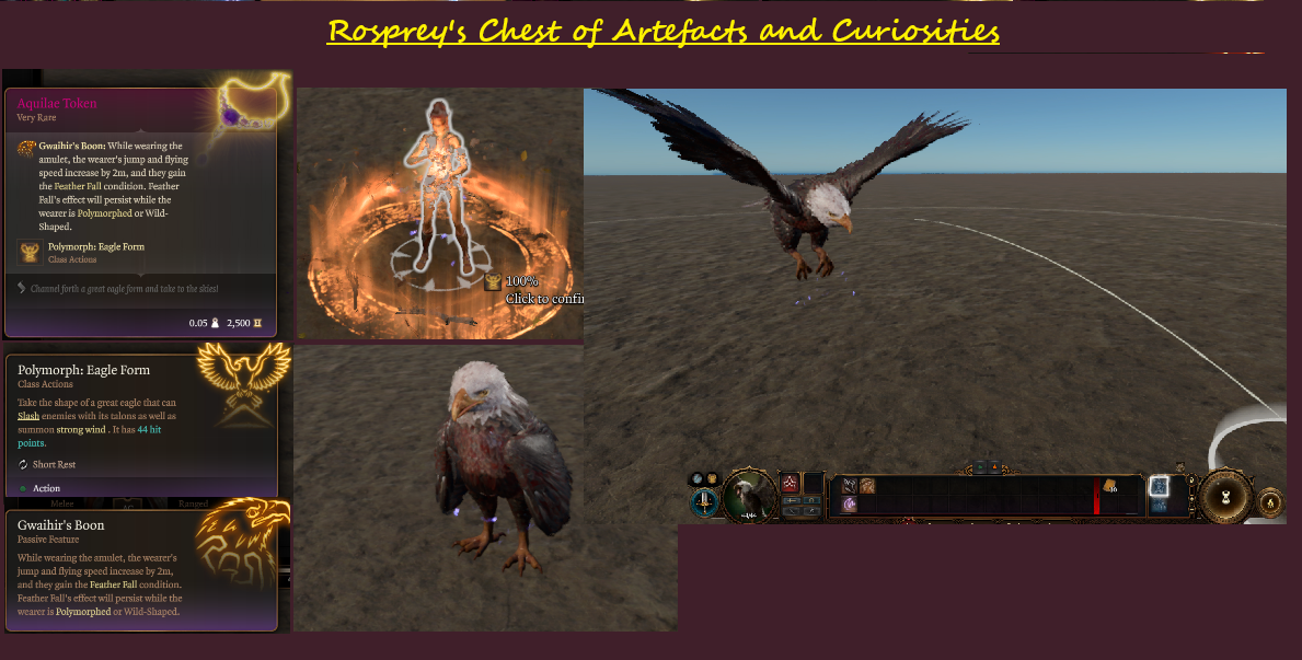 - 鹰徽章(非常罕见的项链;变身为鹰的能力和相应的坠落抗性)