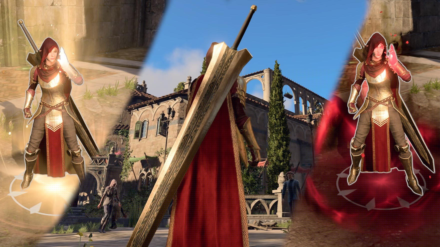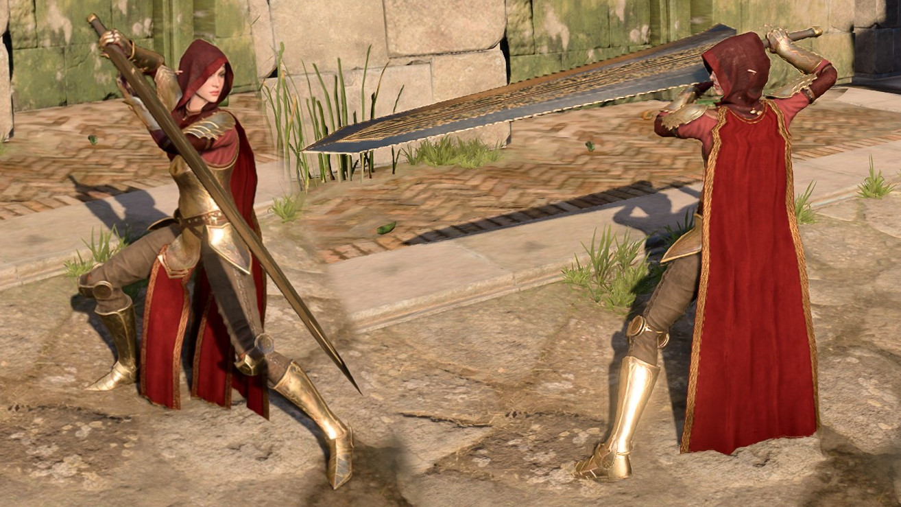 这把武器采用姿态战斗系统;玩家需要切换不同的姿态以获得所需的增益效果和适合当前情况的法术。精准姿态(轻)专注于单体目标伤害,而力量姿态(暗)则适用于范围破坏和控制。