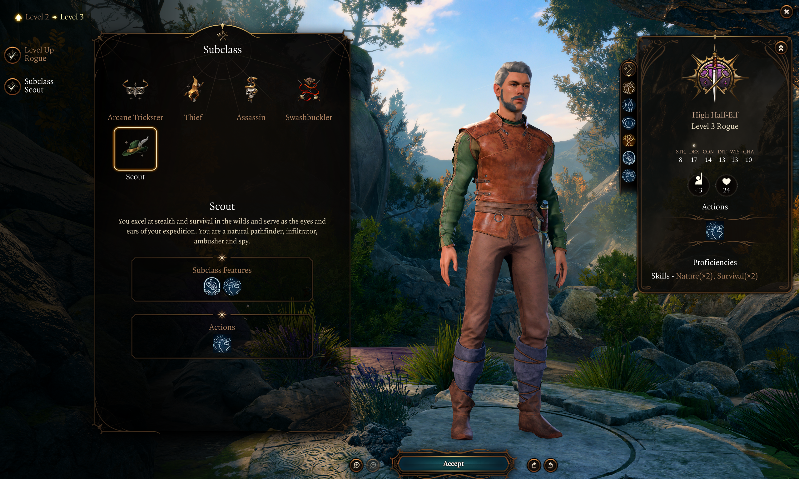 这是为《博德之门3》改编的侦察兵盗贼子职业。如果发现任何重大问题,请告知我。能力描述和非 RAW 的特性将在下面讨论。