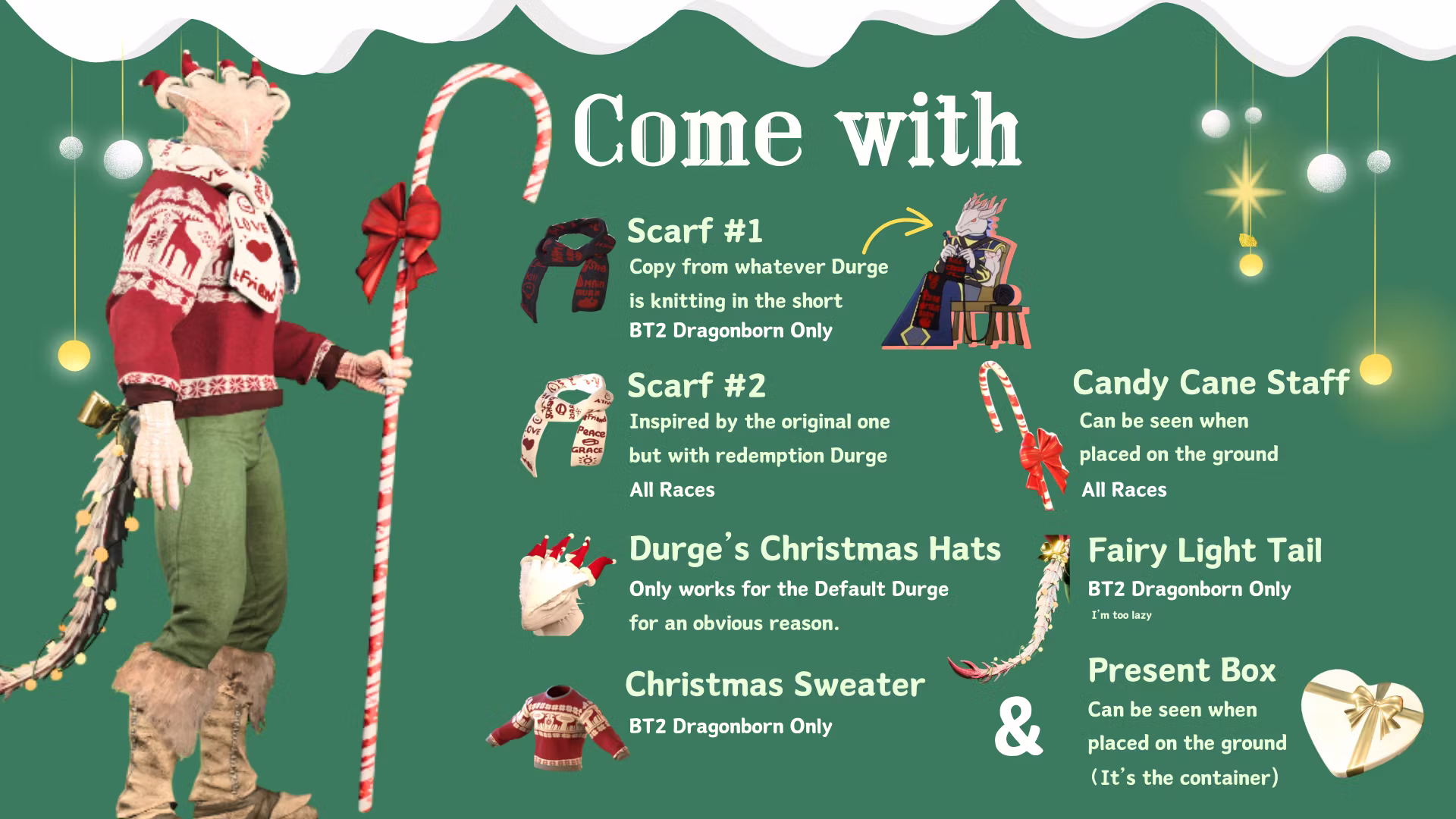 Durge 的圣诞帽: 只有默认的 Durge 才能使用(原因显而易见)。