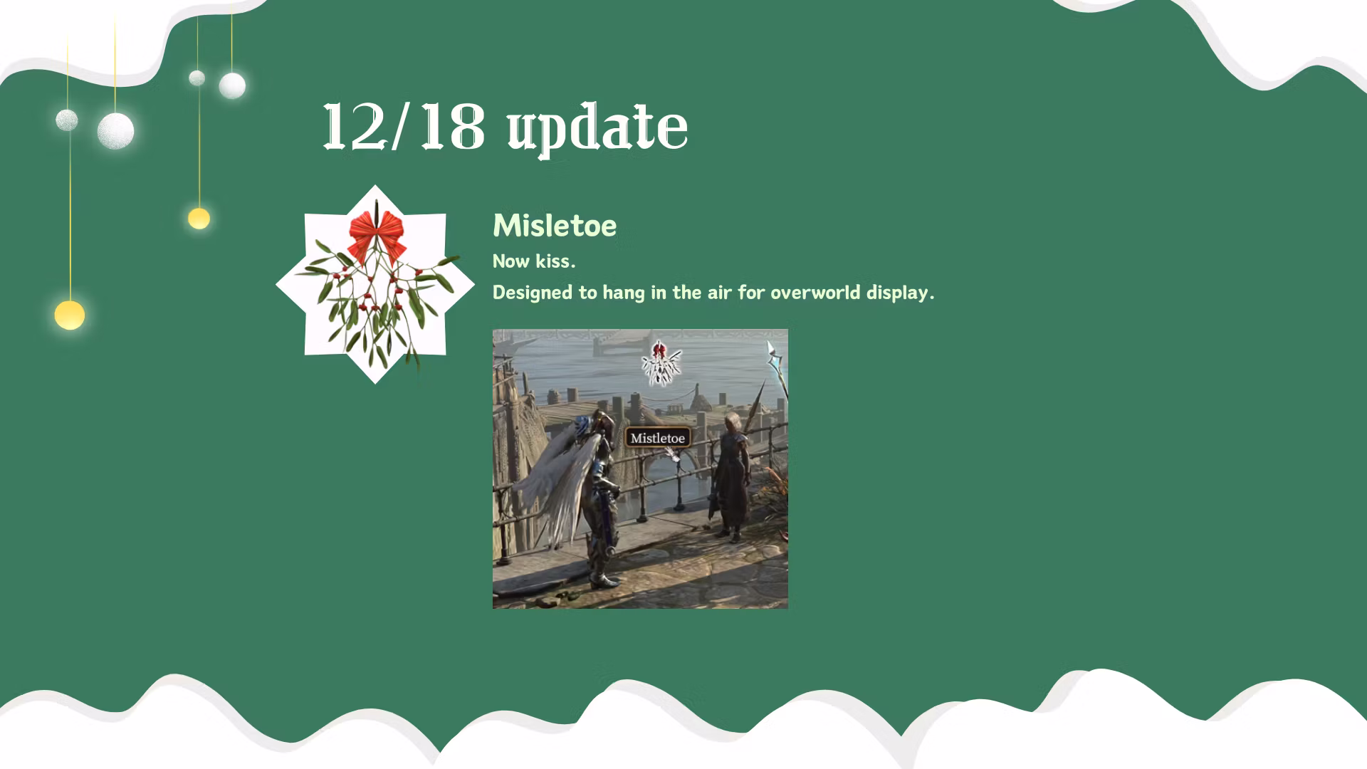 12/18 更新: 槲寄生: 放在地上时可以看到。