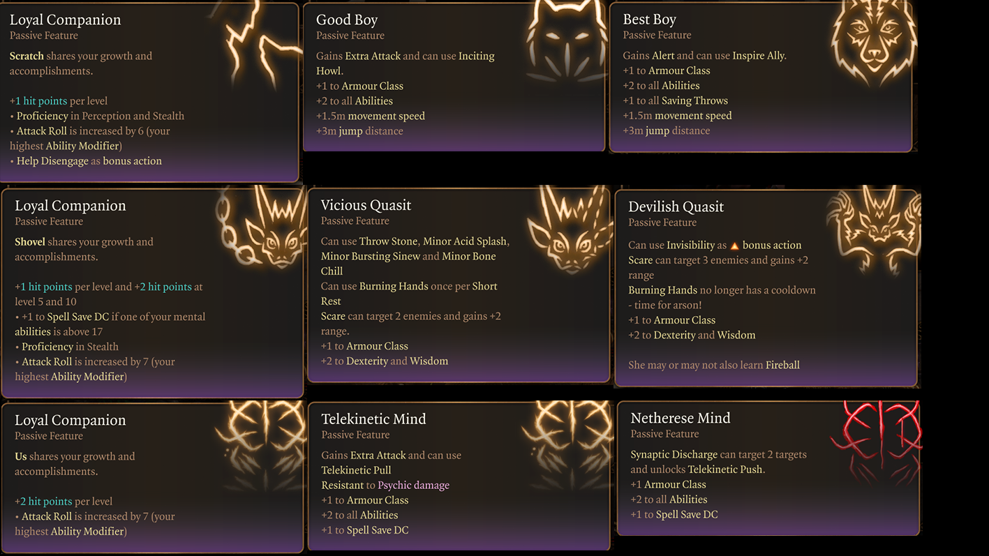 - 阴森咬击造成 3d4 损伤,升级到 3d8(或 3d10 如果你的 MOD 允许你超过 12 级) – 是的,这在 6级 时比原版低一些