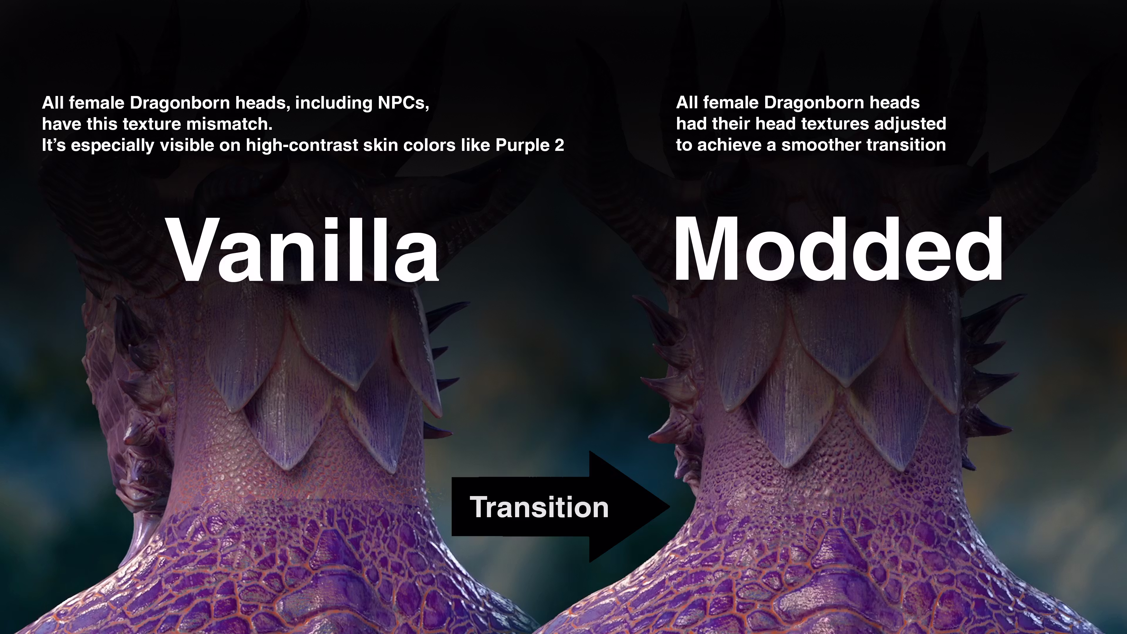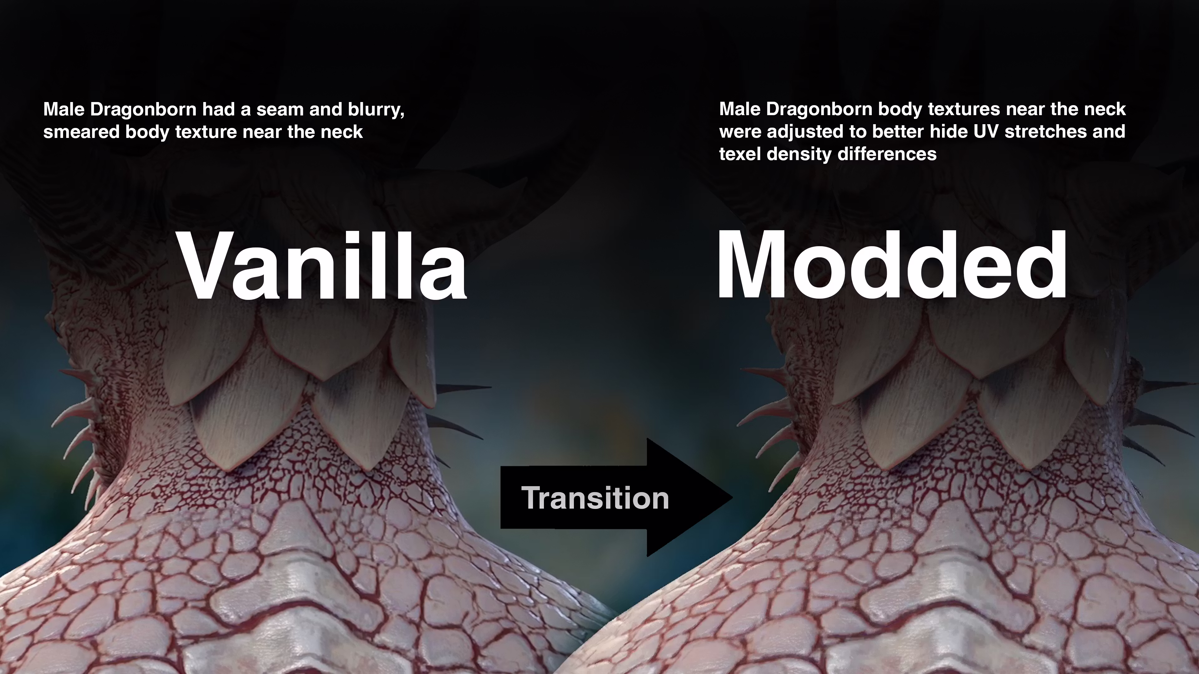 此模组解决了所有龙裔角色可见的颈部接缝问题。