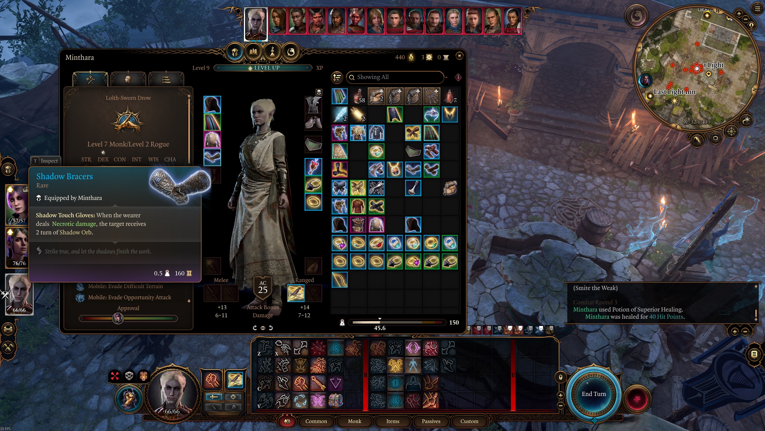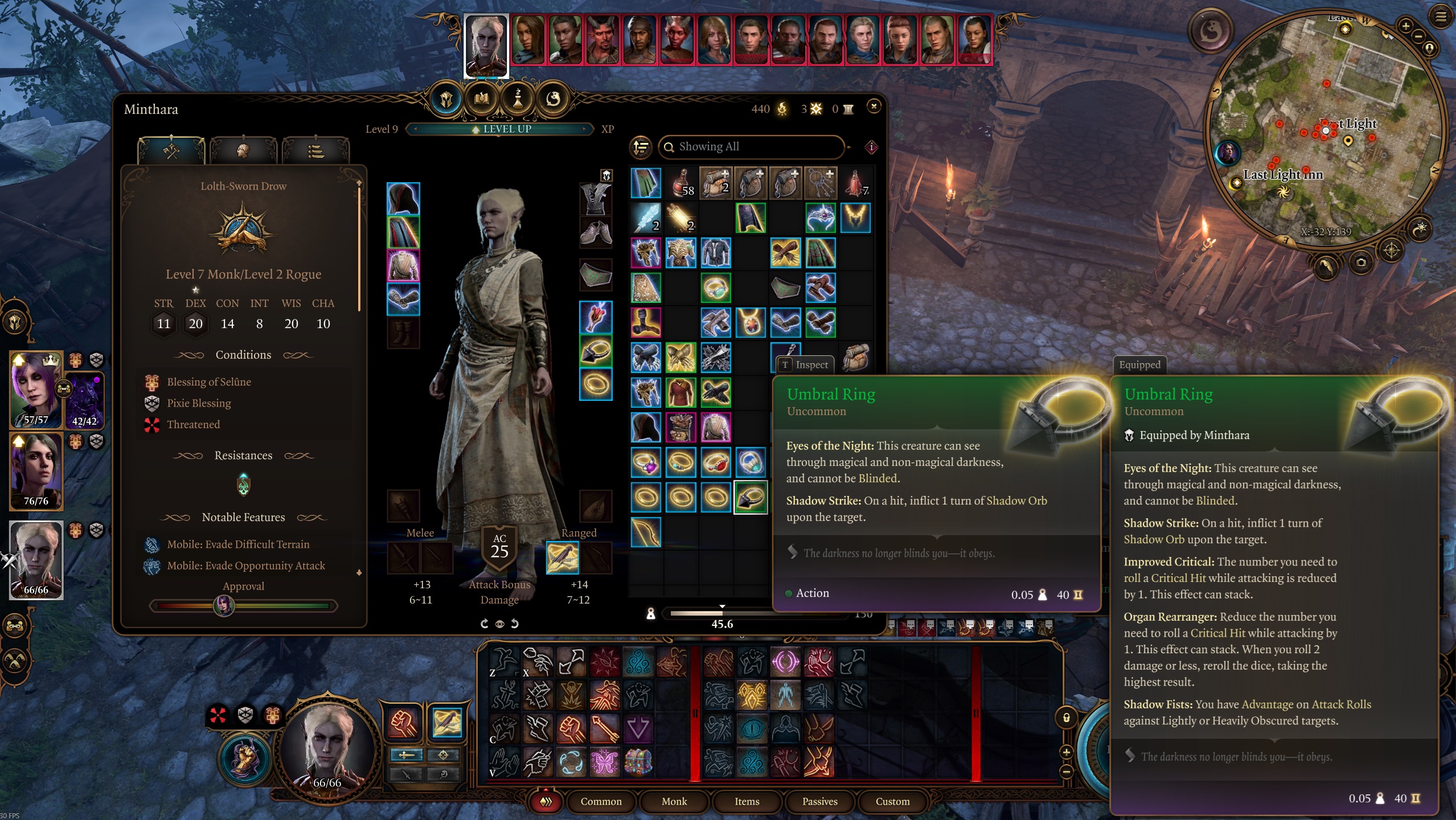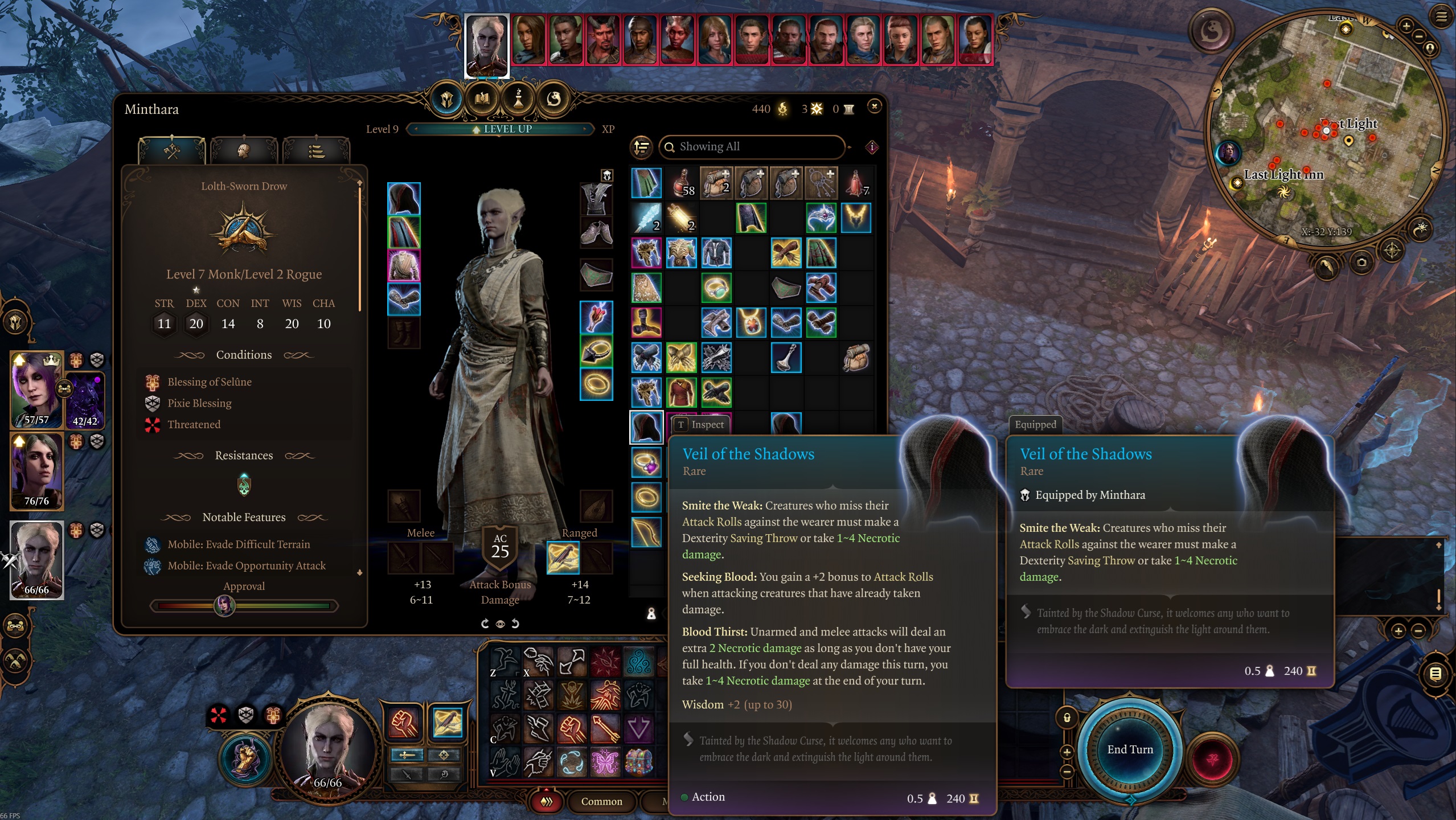 暗影面纱 – 当对手错过你时,他们必须通过一次 DC 16 的 DEX 投掷检定或承受 1d4 腐蚀伤害。