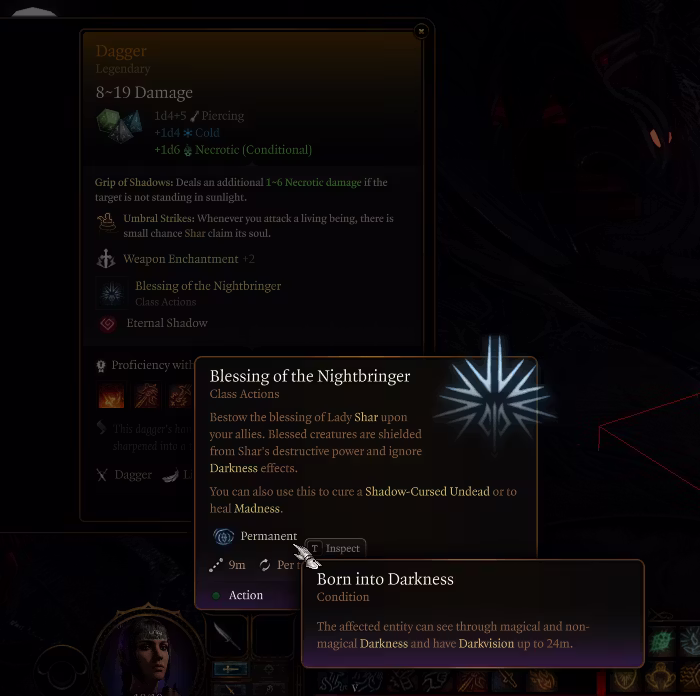 注意: 此更新在游戏内添加了一把传奇武器,其模板由 Shadow_Blade_Shar 提供。如果您未安装Better_Origin_Shadowheart 模组,该武器将只是一个占位符武器,并且非常普通,而不是真正的“传奇”武器。后者模组会覆盖此武器,因此要获取如图所示的武器,请安装 Class Mod。