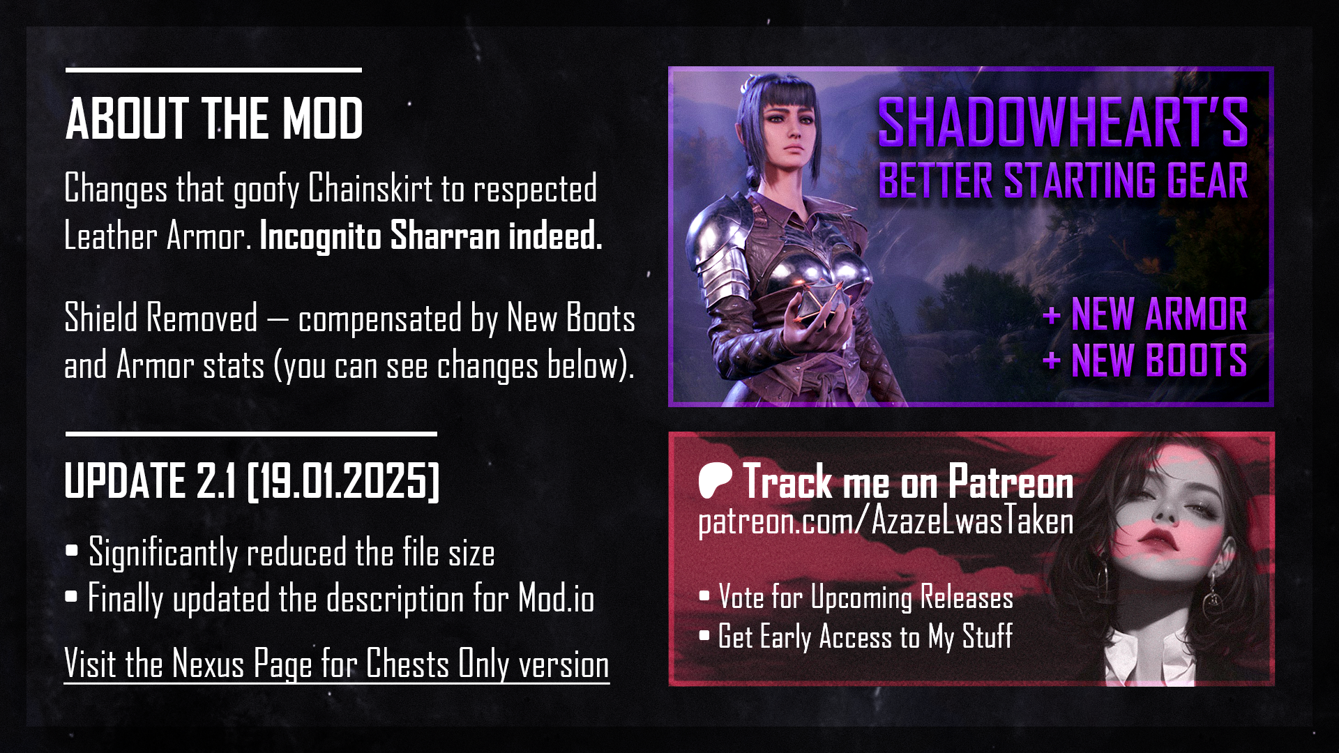 Shadowheart’s Better Starting Gear 提供了完全功能性的、可以染色的盔甲,这些盔甲来自早期访问版本。
