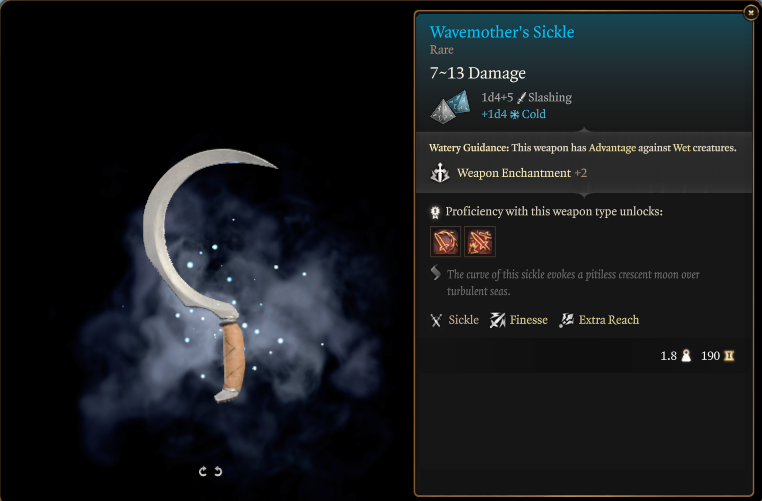 你是否曾经希望使用一把不错的 Sussur 单手武器?怀念在桌面游戏中使用长鞭的感觉吗?不再渴望了!这个模组将所有基础游戏中的镰刀转换为类似于2014年PHB中找到的长鞭。