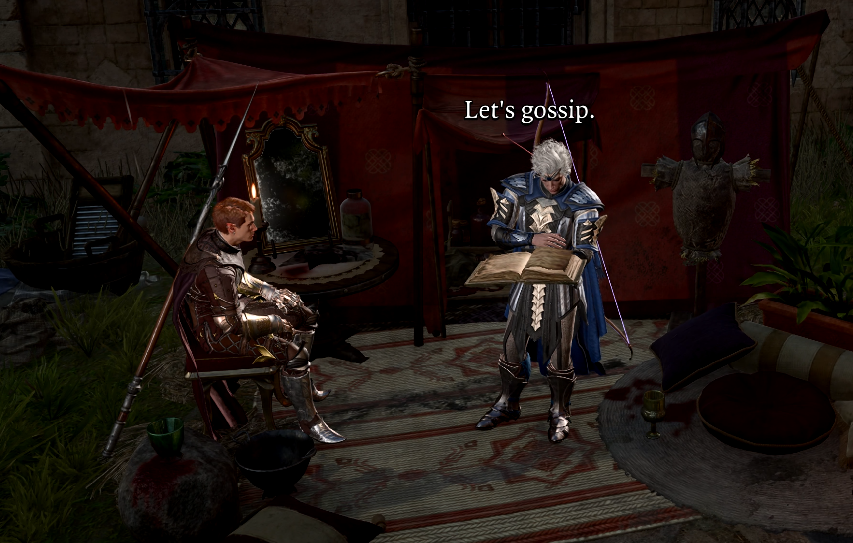 当你坐在阿斯塔里安的凳子上时,他每天会有所反应。他的总共有超过40行台词,并且这些反应取决于你与他的关系:
