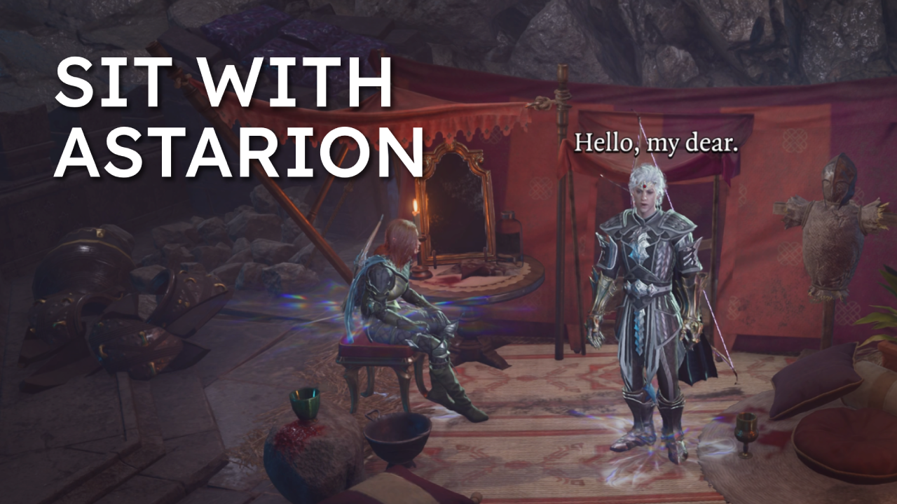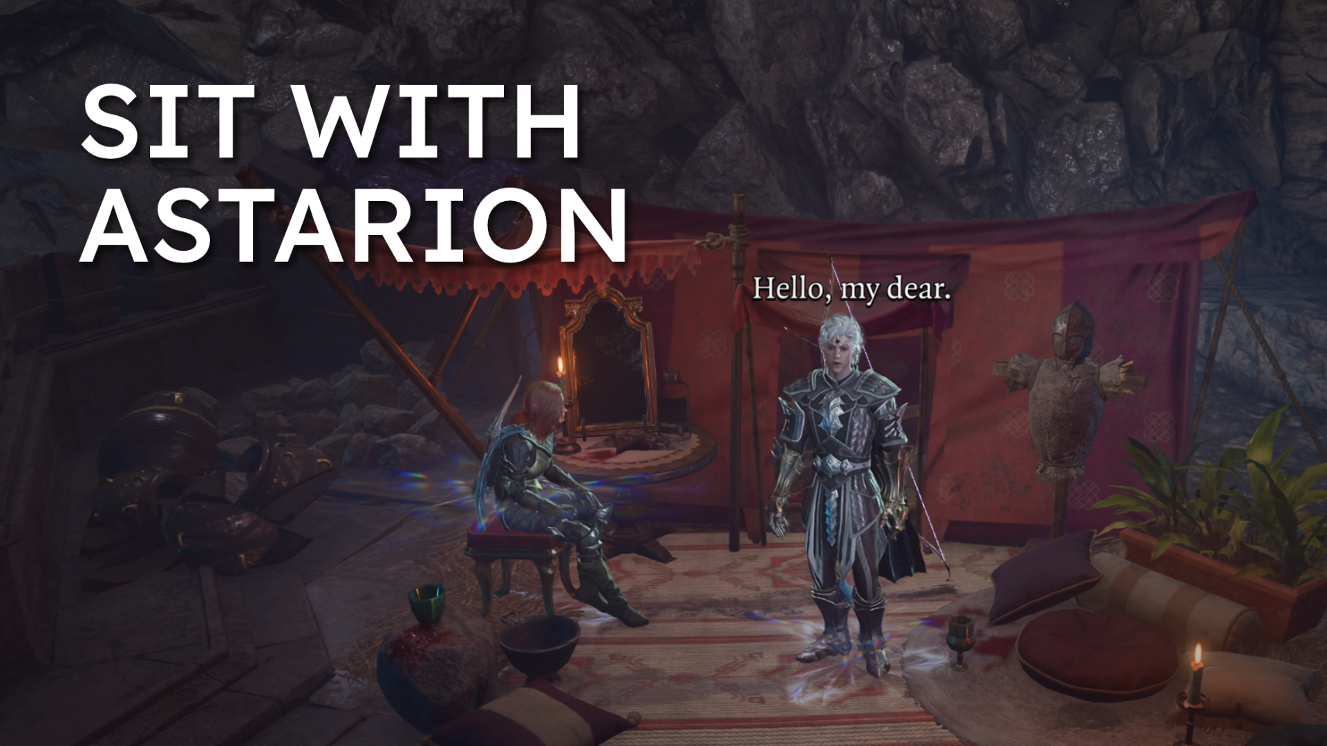 现在当你坐在阿斯塔里安的凳子上时,他会有所反应。坐下来吧,亲爱的。🪑