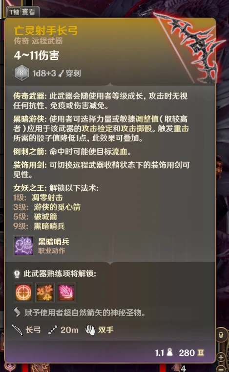 Skirbie 的亡灵射手 – 成长装备套装的中文翻译。添加了三把拥有不同独特技能的会依据角色等级逐渐解锁新技能的弓、长剑和腕弩,两套有相同独特技能的会依据角色等级逐渐解锁新技能的护甲套装。