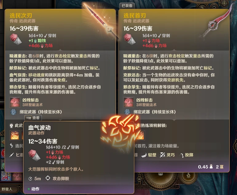4、Dark Urge – Slayer Equipments and Spells,邪念 – 杀戮者装备和法术:该模组添加了2把拥有不同技能的匕首,基本都与邪念相关但是不是邪念的角色都可以使用。另外这个模组还包括了大量的护甲套装和营地衣服。