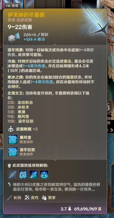2、Evelyn’s WinterRose – Frost Claymore,Evelyn的冬蔷薇 – 寒冰长剑:该模组添加了一把拥有独特技能的依据角色等级逐渐解锁新技能的长剑,自带一系列的冰属性攻击和异常状态新技能,按U键可入鞘或出鞘;