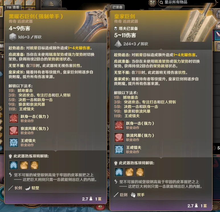 4、Royal Greatsword- Blade of the Corrupted King,皇家巨剑 – 堕落君王之剑:该模组添加了四把拥有相同独特技能的依据角色等级逐渐解锁新技能的巨剑和长剑,该剑可以自由切换两种攻击架势,利用精准或强力架势进行不同侧重点的打击。11级后还能通过终极技能“王或懦夫”来随机使敌人获得王者或懦夫状态,趣味与实用兼具;