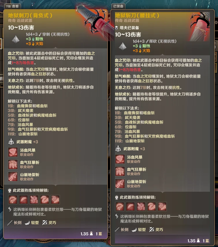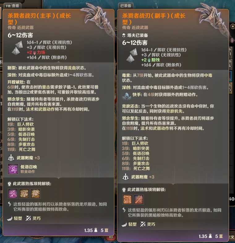 6、Slayer Warglaives- Dark Urge Twinblades Weapon,杀戮者双刃 – 邪念双刀武器:该模组添加了两把拥有不同技能的依据角色等级逐渐解锁新技能的双刀,虽然名字带有杀戮者但技能基本和杀戮者形态无关,大多数都是来自原版技能的改版;