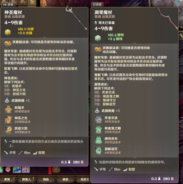 添加了9支拥有不同独特技能的会依据角色等级逐渐解锁新技能的魔杖,1把拥有独特技能的长剑以及1套拥有独特技能的护甲套装。你可以双持两支相同或不同的魔杖,部分技能能作为你运用附赠动作补充伤害而使用。