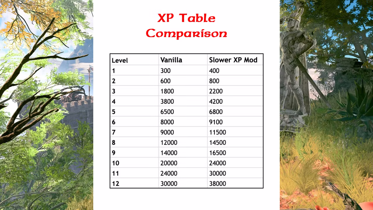 现有游戏:添加修改经验值的模组可能会导致一些问题,尽管在我的测试中每个等级所需的经验值都如预期增加。