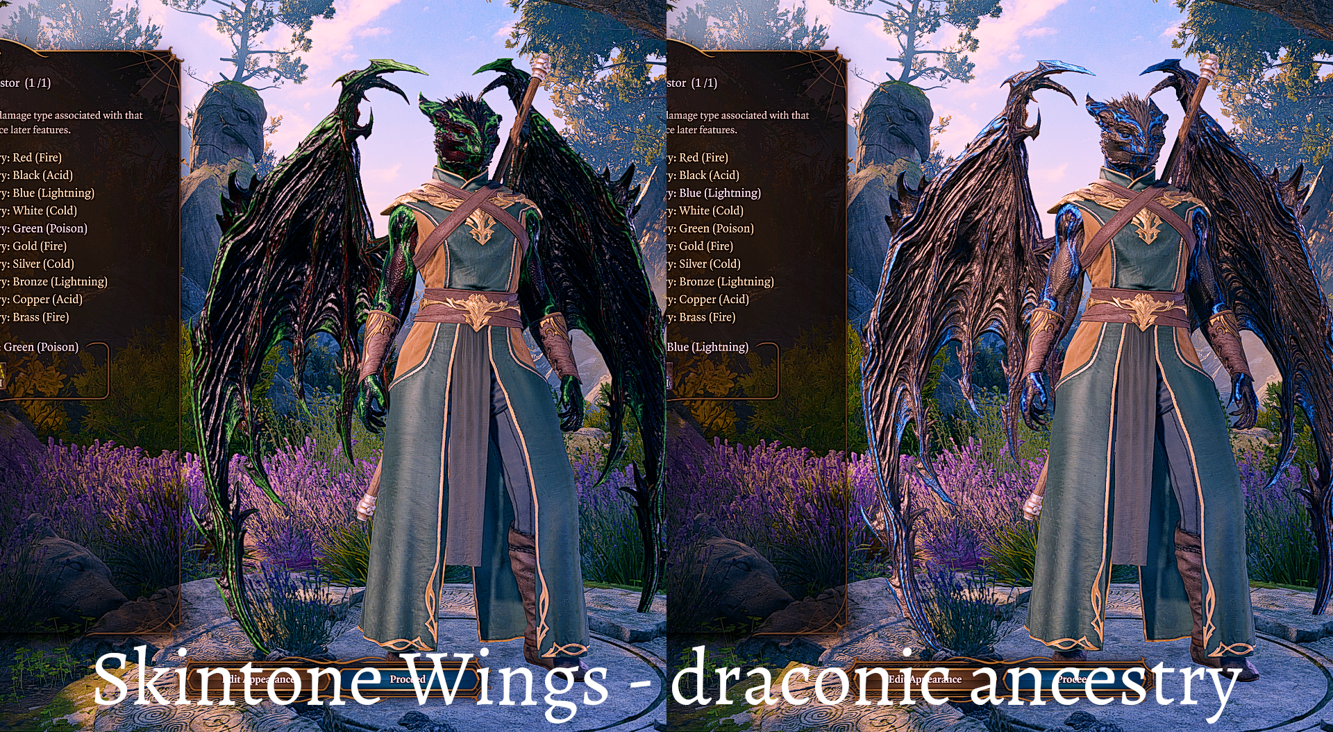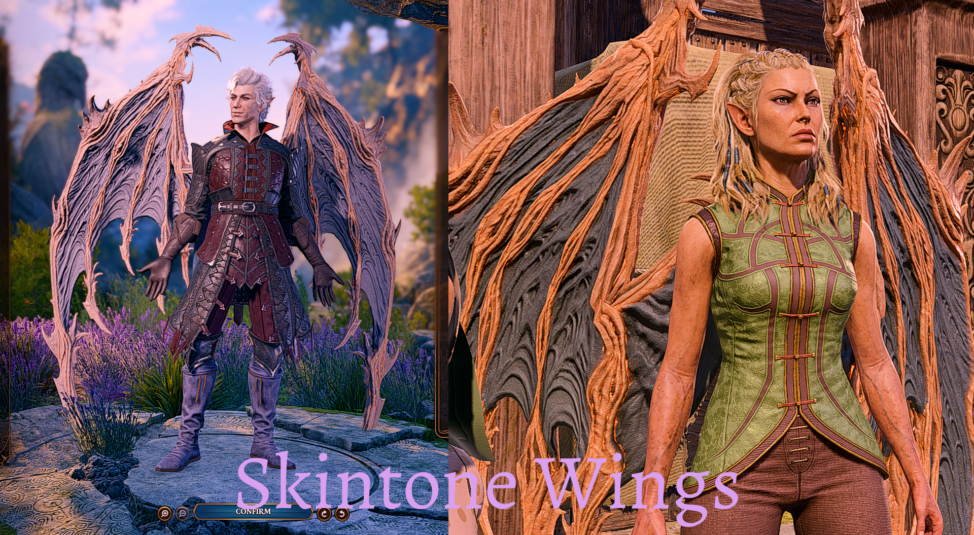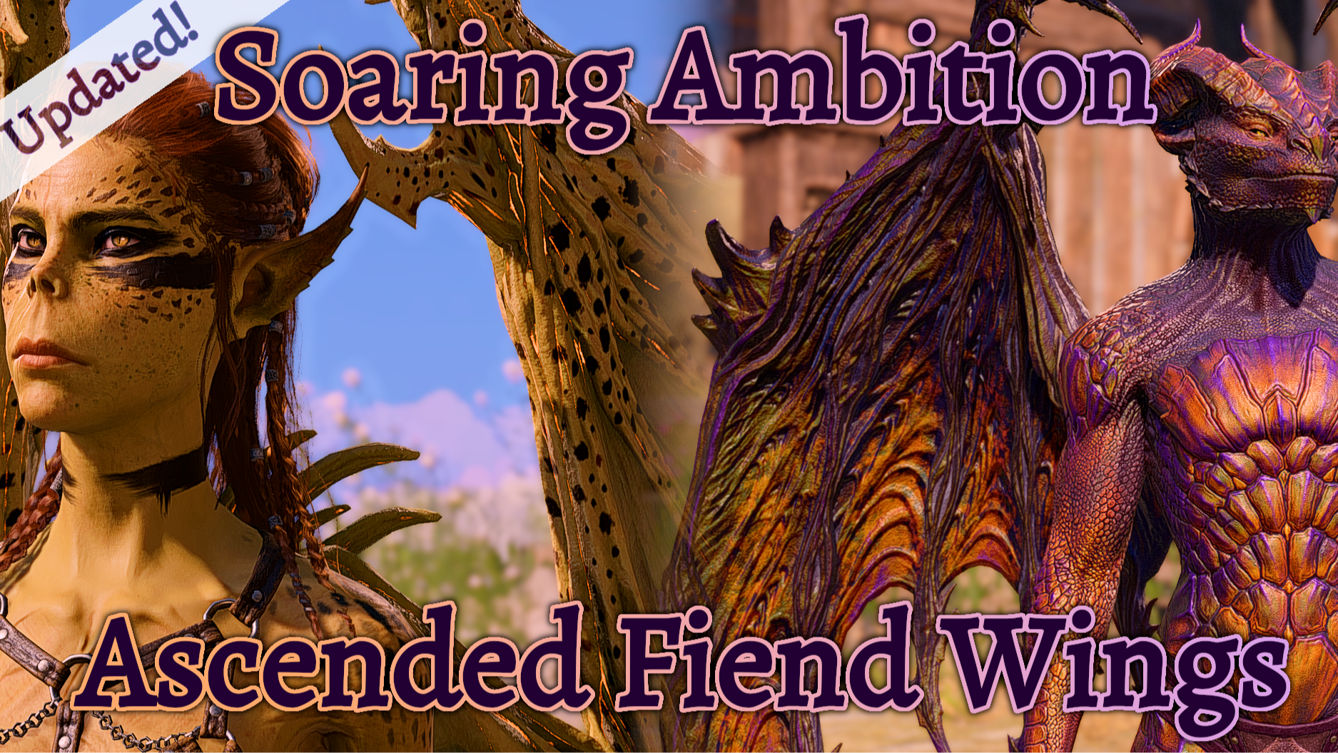 更新日期:2025年04月11日,版本号:1.0.0.63 – 添加了一个与穿戴者肤色匹配的翅膀版本,并为 Githyanki 和 Dragonborn 提供了种族特定纹理。在所有高大种族的角色创建中添加了该肤色版本的翅膀(对于龙裔,在胡须和头发槽位)。添加了一种“翱翔野心药剂”,永久赋予饮用者飞行能力。添加了一个营地用脚部版本的翅膀。更改了所有翅膀物品名称以包含使用的槽位。更新了一些物品图标并调整了一些动画。