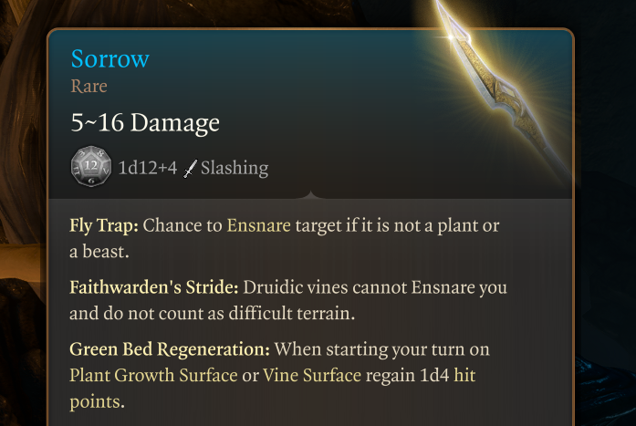 更新:添加了一个被动技能,使用户获得长枪熟练度(根据评论请求),这样任何种族的德鲁伊都可以有效地使用此武器。