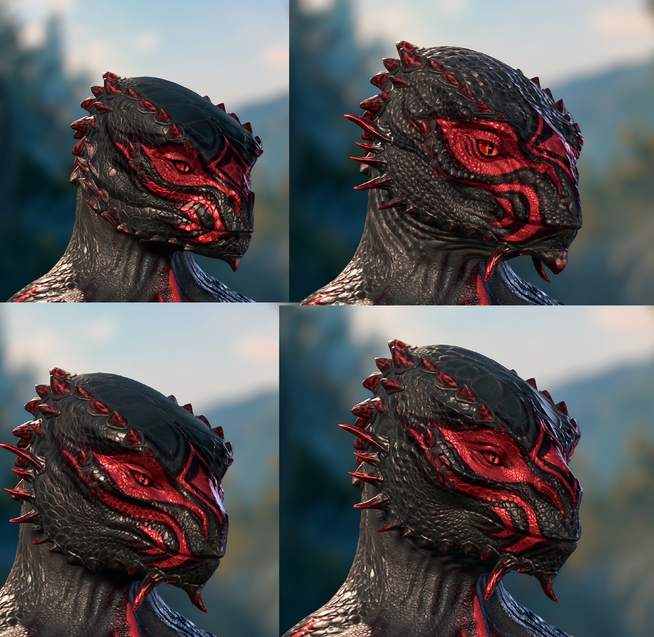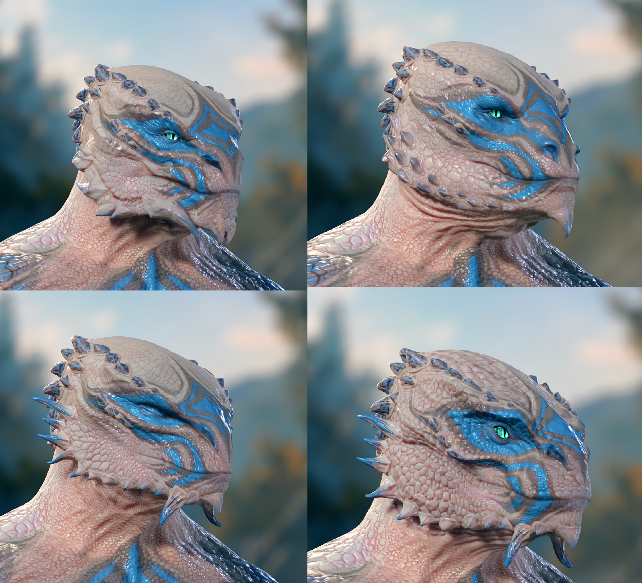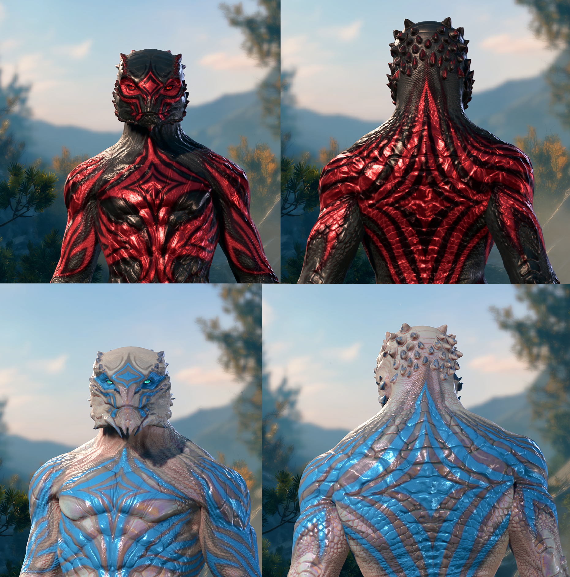 所有基础游戏中男性和女性龙裔的头部、身体以及尾部1都有新的印记。