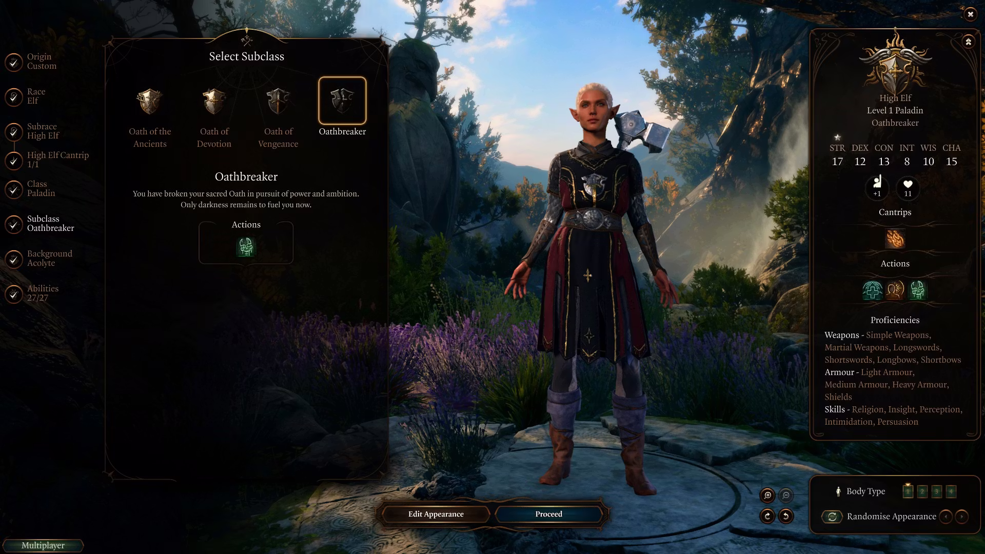 该模组允许你在创建角色时选择圣骑士职业的誓约破坏者副职。请注意,这个模组不会移除从主要副职中打破誓言的能力;你仍然可以通过这种方式成为誓约破坏者。此外,这个模组也不会赋予誓约破坏者重新专精的能力。请在选择副职前规划好你的角色构建,或者使用其他模组来允许重新专精。