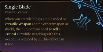 剑舞者是一个专为盗贼设计的自制子职业,专注于战斗的基本要素:在敌人最脆弱的地方发动攻击,同时避免自己受到伤害。一个剑舞者能够进入战斗的“流”状态,在这个状态下通过连续打击和躲避来累积“流”的层数,直到他们完成致命的最后一击。