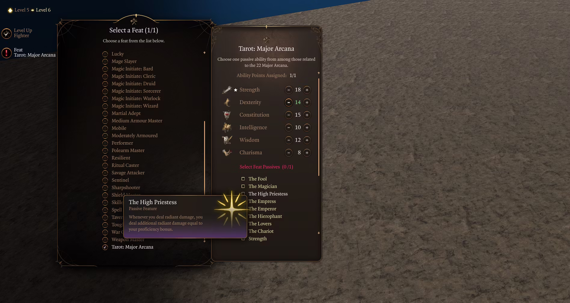 The High Priestess(女祭司): 每当你造成辐射伤害时,额外造成等于你的熟练加值的辐射伤害。