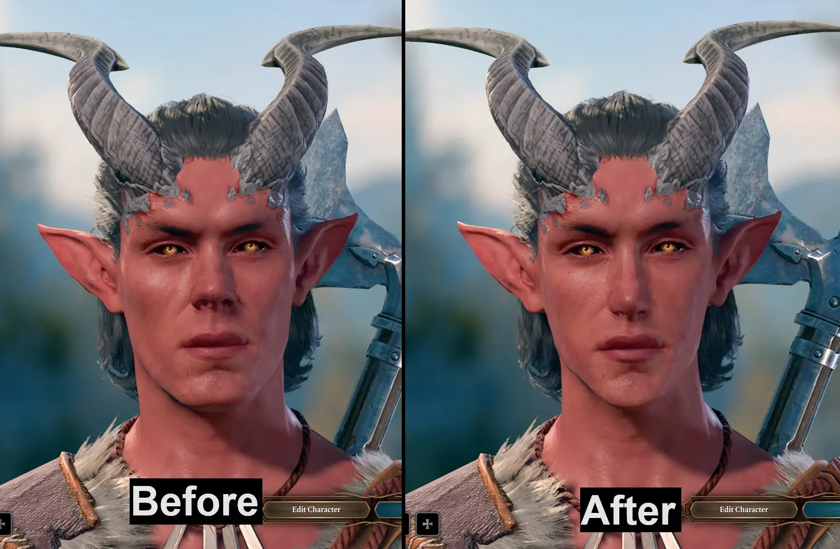 此 MOD 使用原版骨架和材质。它只是一个网格编辑。形状调整主要集中在下巴/颈部区域和鼻子上,并且为了能够与原版骨架配合使用,保持了最小限度的编辑。