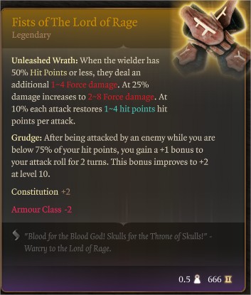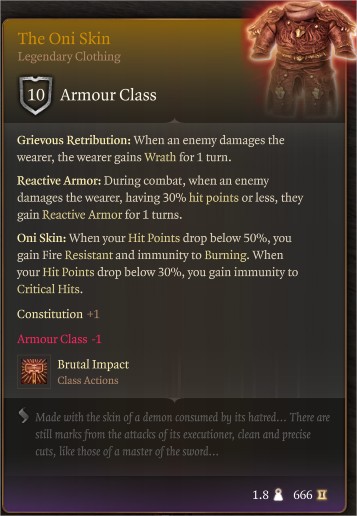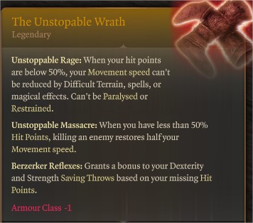一套从头到脚的盔甲和一枚戒指,专注于高风险、高回报的游戏玩法。生命值越低,你就会变得越强大且更具有生存能力。