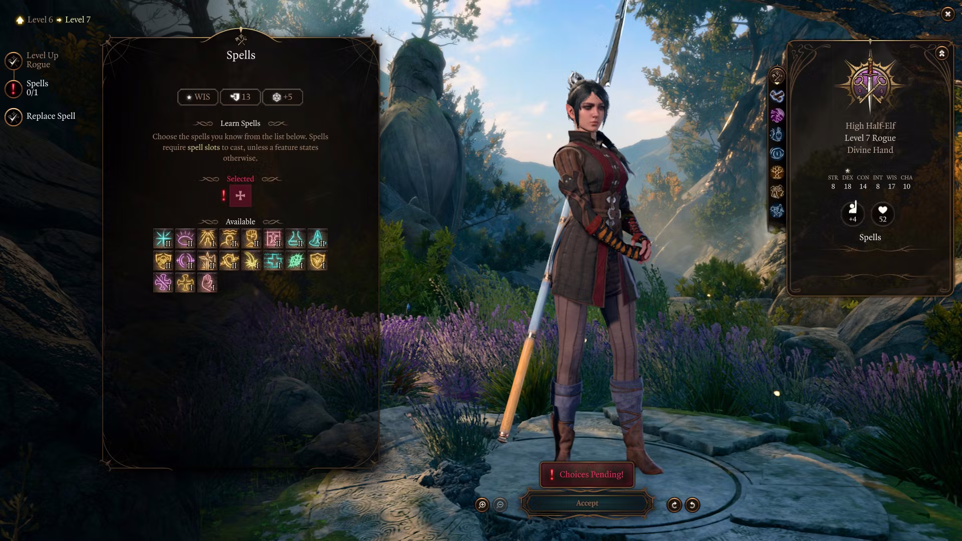 你的法术基于你的智慧属性。对于那些使用等级解锁器的人来说,这个子类应该仍然可以在13级到20级之间学习新的法术。
