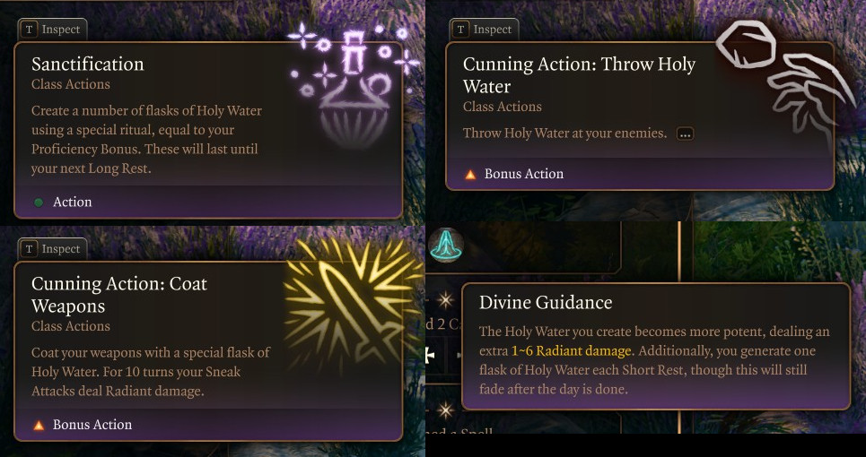 - 你可以制造等于你的熟练加值的圣水瓶,并可以使用它们作为额外动作投掷圣水。