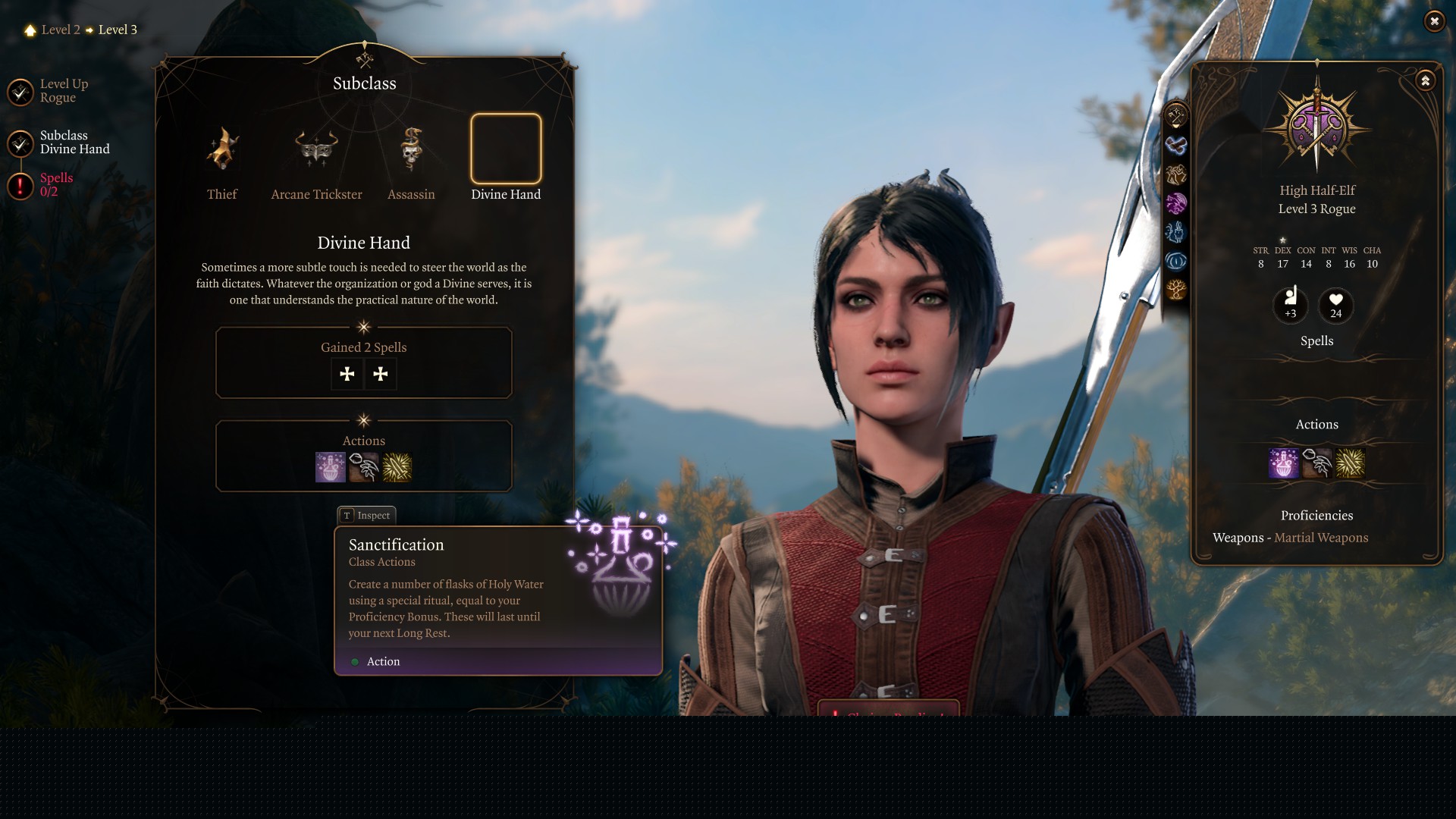 这是 KibblesTasty 的 Divine Hand 子类的一个小改编,它是一个可以学习牧师法术的盗贼第三施法者。除了魔法之外,他们还可以使用圣水炸弹作为额外动作。