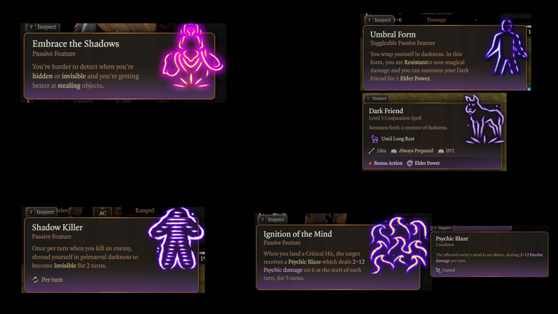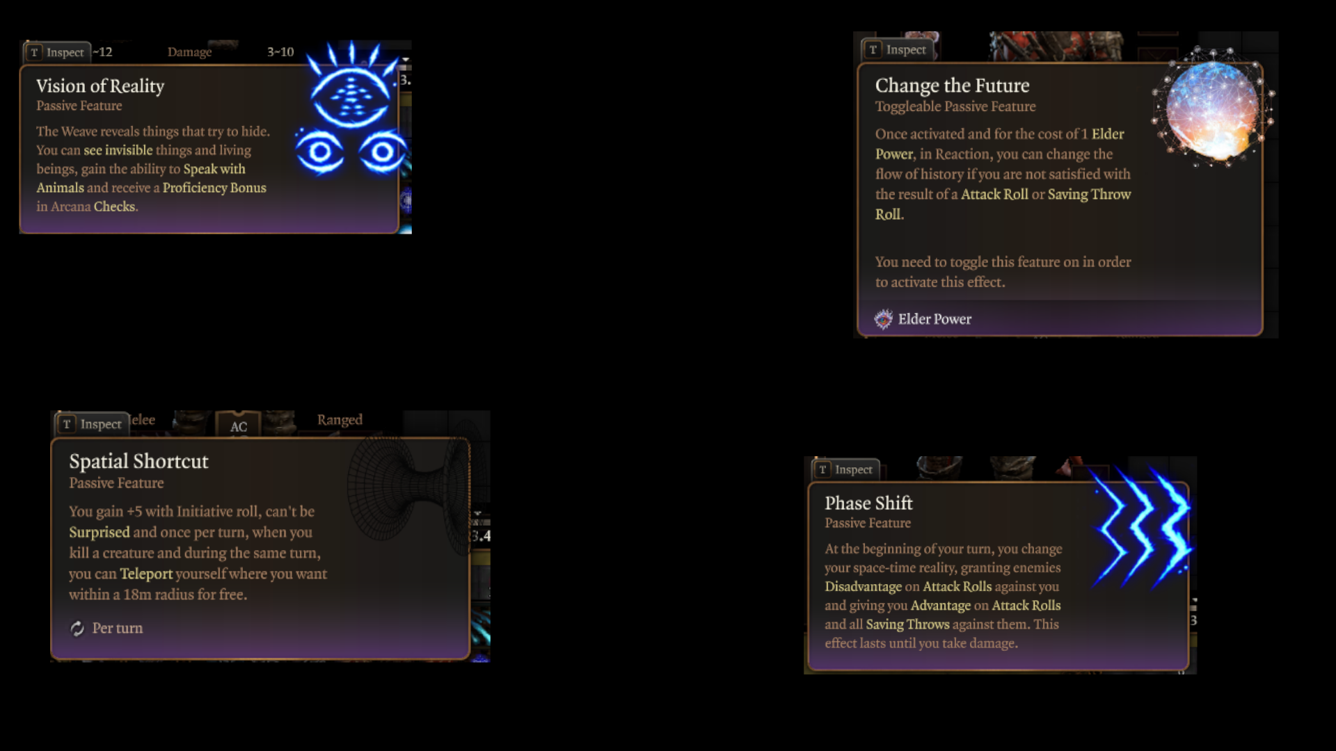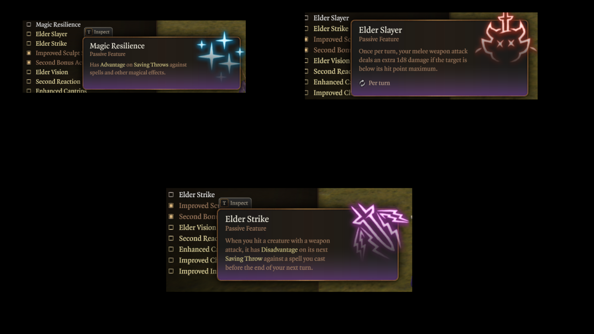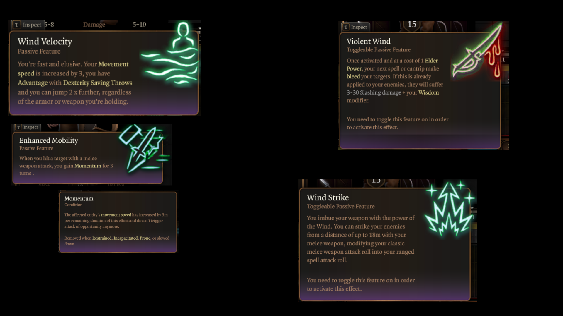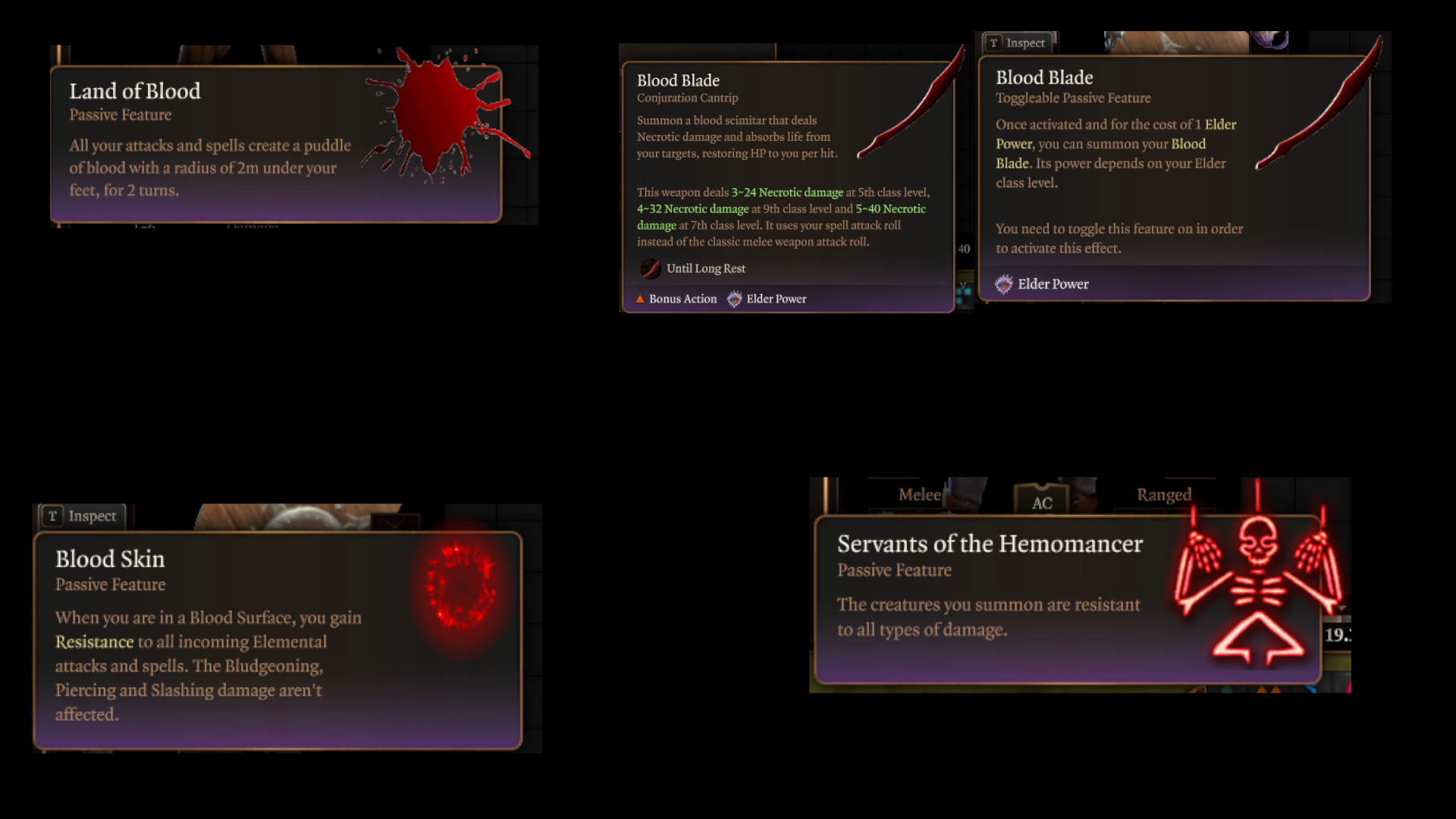 一个可切换的被动技能:血刃:一旦激活并消耗1点长者力量,你可以召唤你的血刃。其威力取决于你长者的等级。