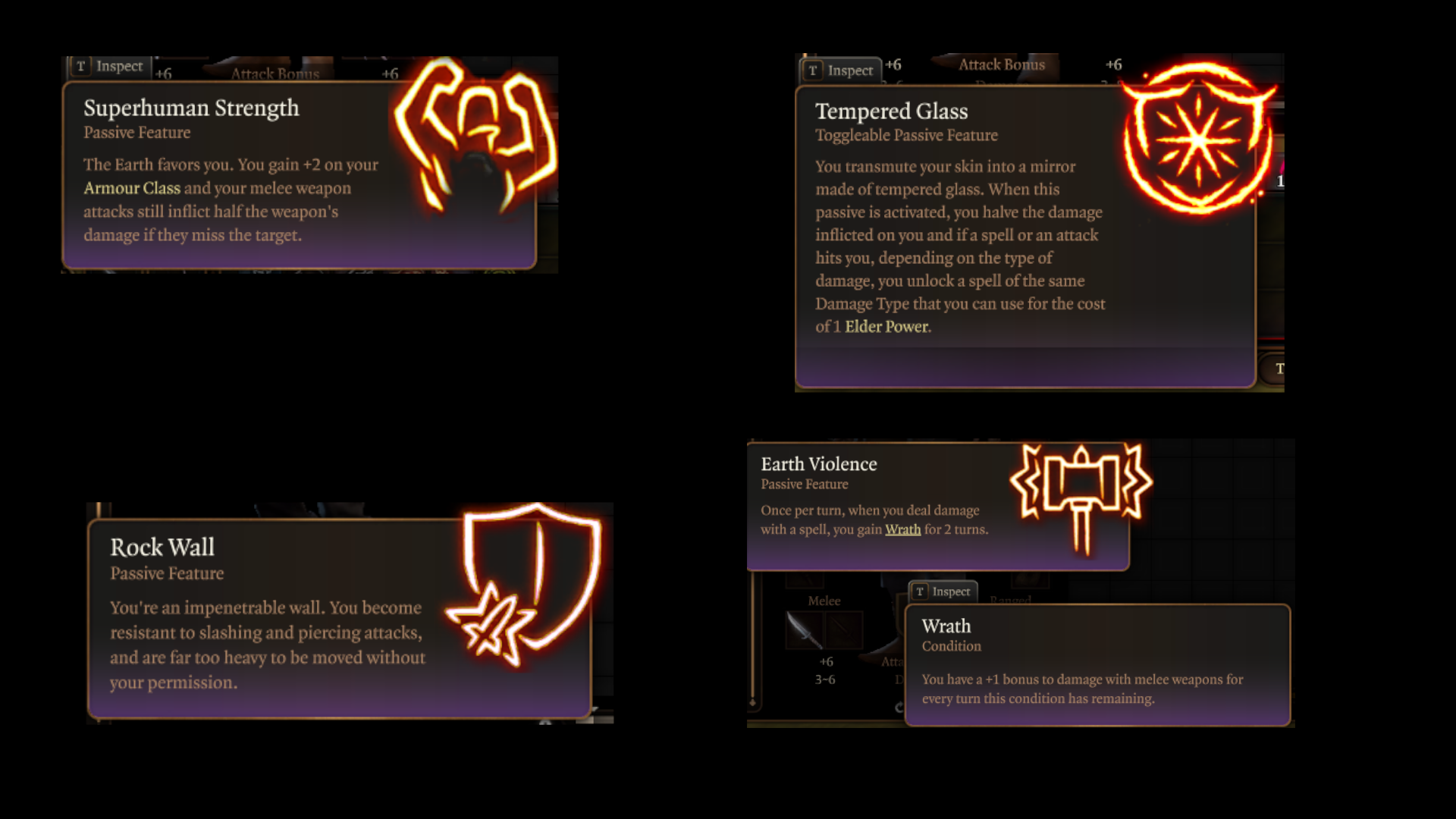 一个被动技能:血肤:当你处于血面时,你会对所有元素攻击和法术获得抗性。钝击、穿刺和割伤伤害不受影响。