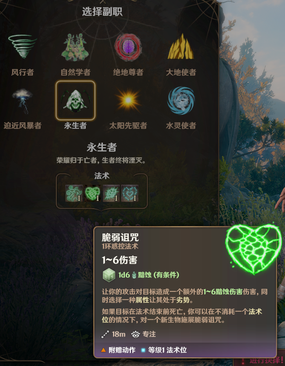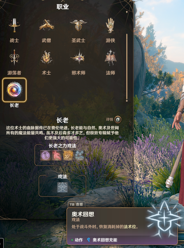 施法主要属性是感知。长老的独特特性需要消耗长老之力才能激活。现在长老可以在12级的上限下游玩,但如果想要体验完整的拥有7环以上独特技能和被动的游戏体验的话,就必须同时使用13-20级mod才能玩到。原模组与密斯特拉的法术兼容。