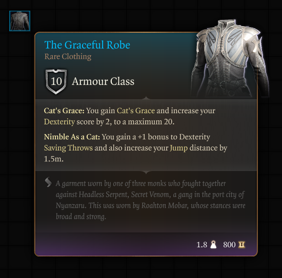 月之奉献长袍,拥有《优雅布料》的一次性奖励属性。