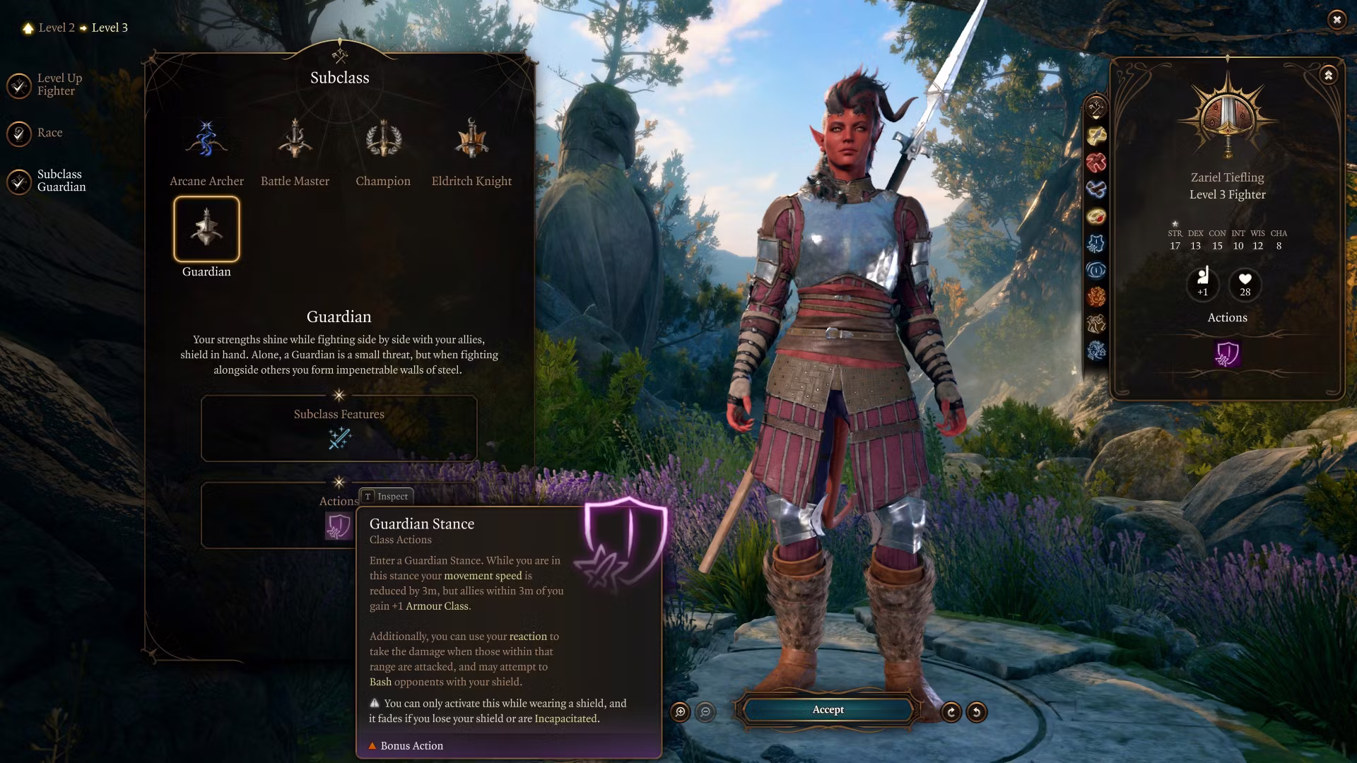 在5e中,坦克是一个复杂的问题,尽管这个副职业并不完全符合传统意义上的坦克定义。这个副职业比其他我做的副职业要复杂一些,请告诉我它是否好用。我担心近战能力可能会因为《博德之门3》的移动和距离机制而显得有些繁琐,虽然我不希望将其范围扩大太多。为盟友承受伤害应该可以正常运作,但临时生命值可能有点奇怪。目前我没有很好的解决方案,但希望这个副职业在其他方面能够正常工作。