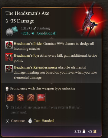 1. 刽子手的骄傲: 提供99%躲避所有攻击的机会。