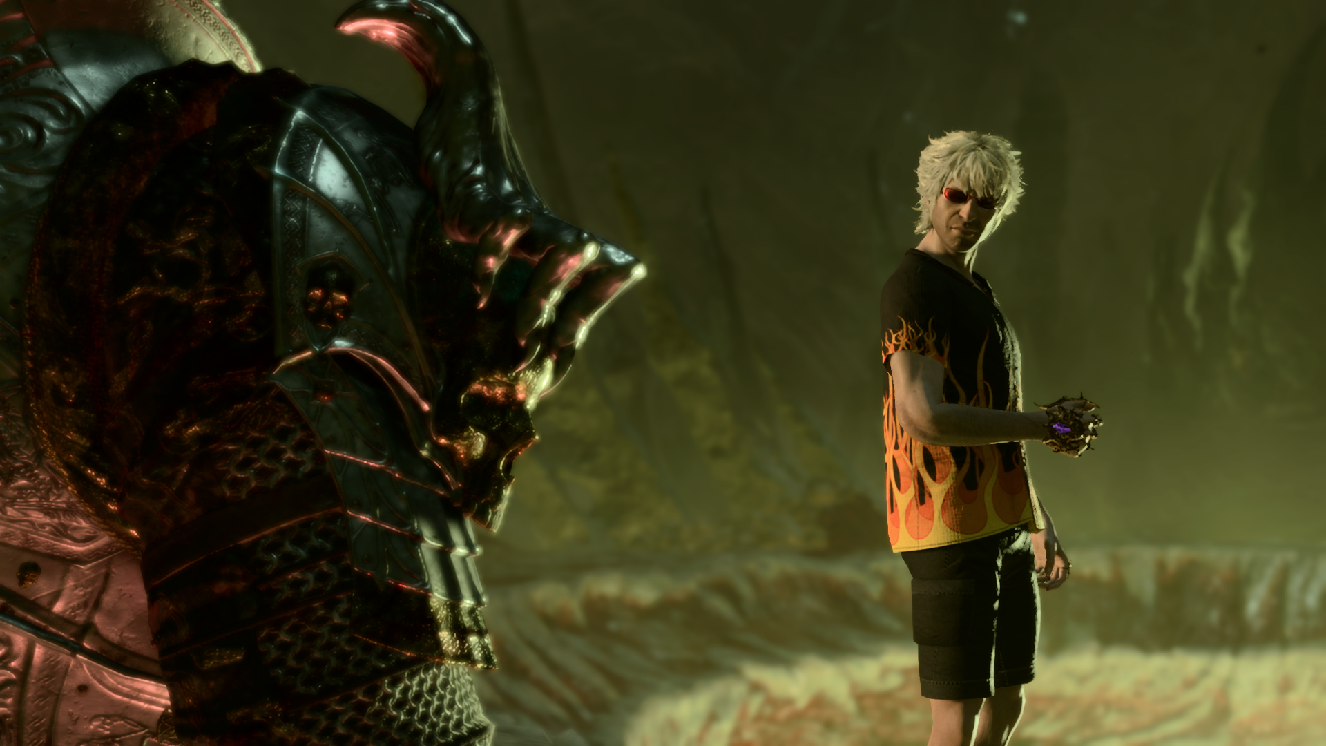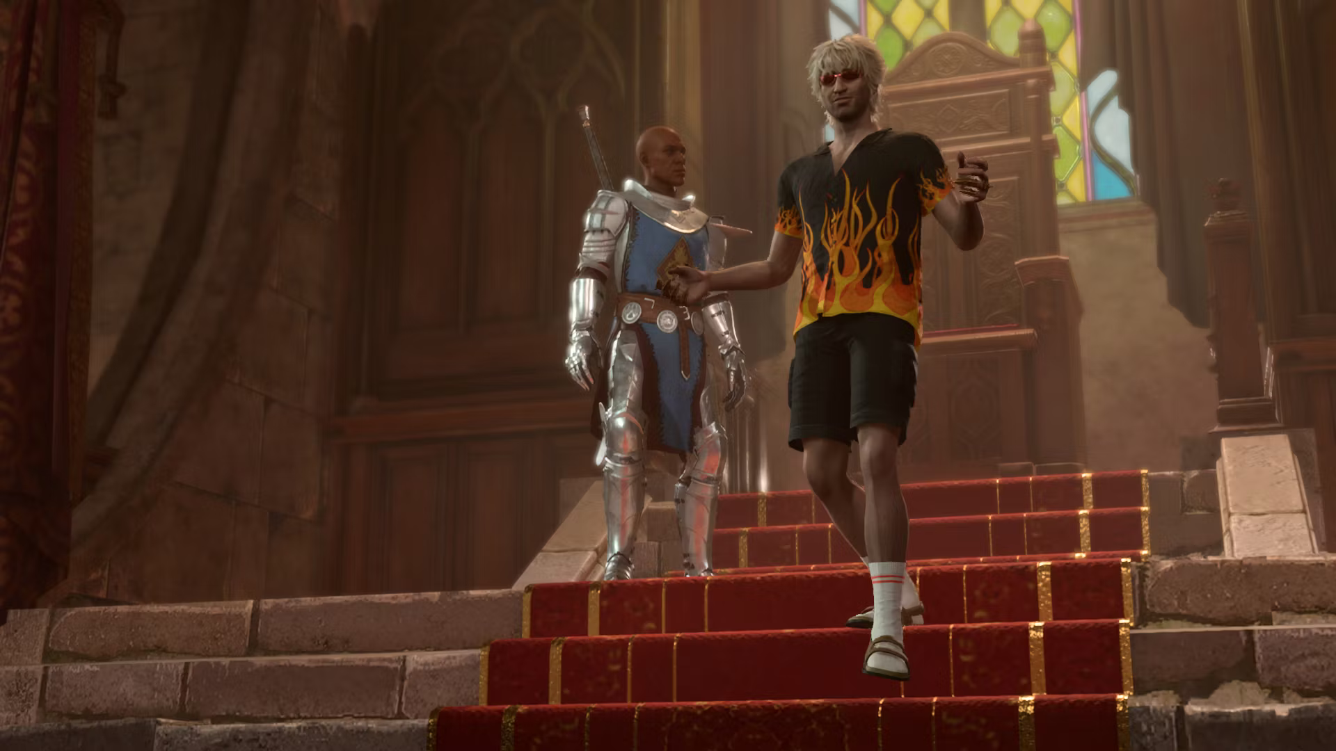 《风味镇的暴君》 是一个外观重制模组,它让 Gortash 的形象变成了 Guy Fieri,并且这是我在 BG3 七月模组马拉松第一周的作品。这个形象包括墨镜、短裤、袜子和凉鞋,当然还有标志性的火焰图案衬衫。除了基础外观之外,Gortash 在战斗中的另一种形态也进行了更新,使其更符合风味镇暴君的形象。