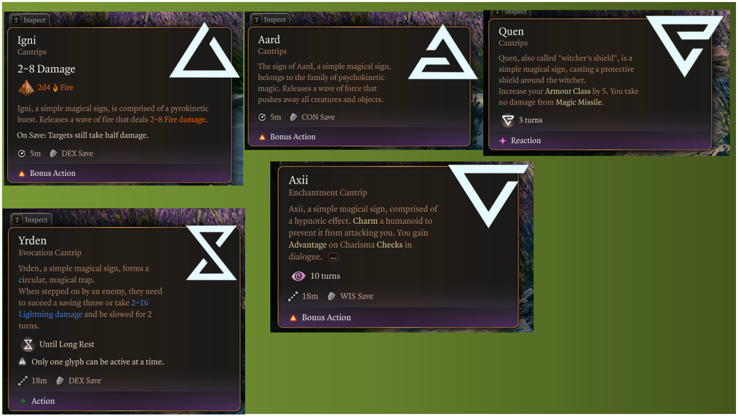 - 巫师符文(Igni、Axii、Yrden、Quen、Aard)