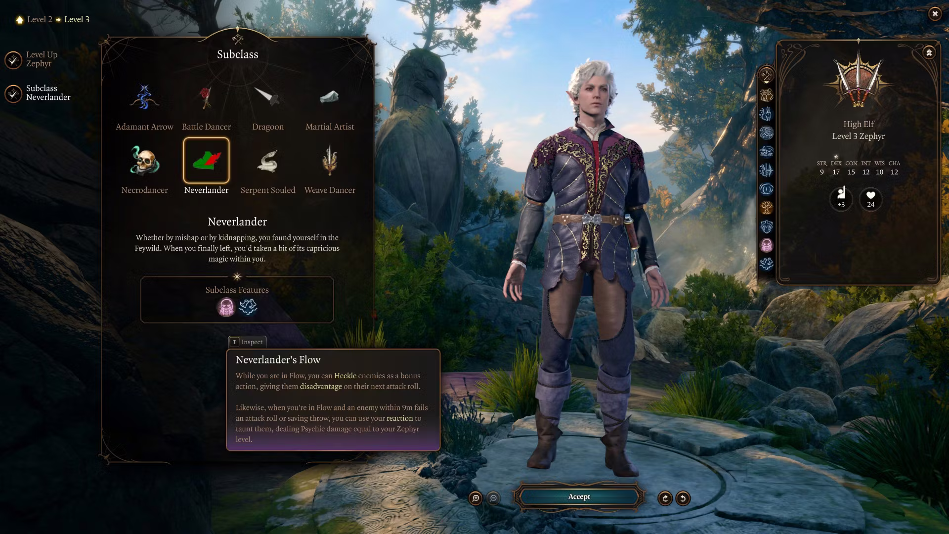 探索八个不同的子职业,从神秘的亡灵舞者到精准射击的坚盾箭手。你可以混合使用刀剑和法术,飞越战场嘲讽敌人,或者手持长戟跳跃移动。这个流派可以升至20级,但一些子职业缺少它们最终的15级特性。后续更新将会填补这些空白,但我并不想因为这些原因而推迟发布,毕竟当前版本已经足够完整以应对基础游戏中的挑战。如果你打算升到20级并且不考虑多职系的话,可以考虑使用坚盾箭手、战斗舞者、武术家、永无岛人或编织舞者。