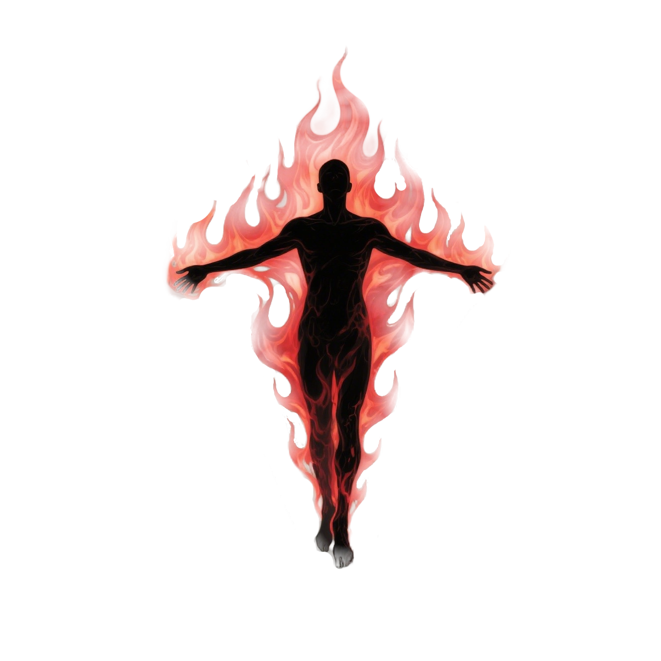 焦黑之人是被扭曲的火焰与冥界焦炭重塑的存在 —— 他们或许曾是死于烈焰的凡人,或许是与深渊火焰恶魔交易的堕落者,甚至可能是被神界放逐、躯体在星界火焰中碳化的弃儿。无论起源如何,如今的他们是 “活着的灰烬”:皮肤如同龟裂的焦炭,缝隙中流淌着幽蓝或猩红的焰光,呼吸时会喷出带着硫磺味的火星,举手投足间弥漫着 “燃烧殆尽” 的诡异美感。