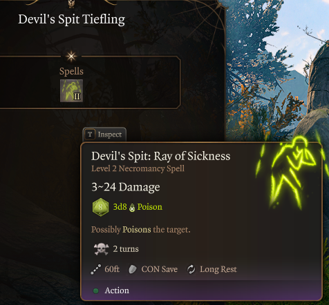 - 致病射线作为 2 级法术,每长休可以施放一次(3级)。