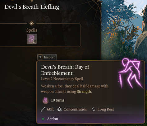 - 虚弱射线法术,每长休可以施放一次(5级)。