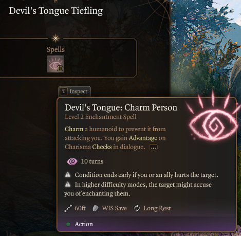 - 魅惑人类作为 2 级法术,每长休可以施放一次(3级)。