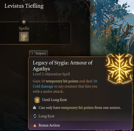 - 阿加西斯护甲作为 2 级法术,每长休可以施放一次(3级)。