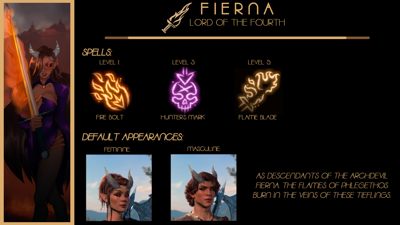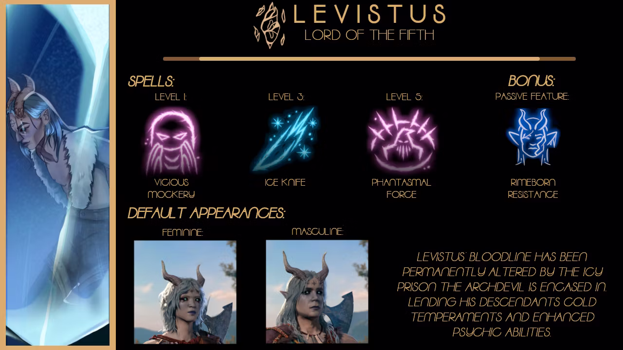 此模组可能与其他包含 Dispater、Mammon、Fierna、Levistus、Glasya 和/或 Baalzebul 子种族的 Tiefling 子种族模组不兼容。