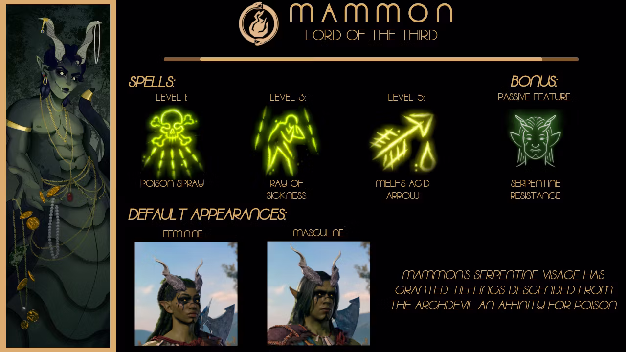 Mammon 血统的 Tieflings 具有对毒药和寒冷伤害的抵抗力。