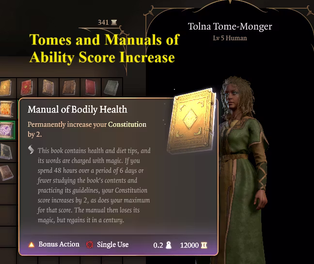 此模组在 Sorcerous Sundries 中的 Tolna Tome-Monger 商店添加了六本来自5e的ASI书籍。购买价格为12000,无折扣;最大折扣下价格为4800。