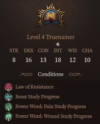 开始前请注意– 真名者应该在创建角色时选择。你可以成功地从真名者转职到其他职业,但我建议不要将其他职业转职为真名者。作为真名者的进度不是基于等级的,而是基于你在游戏中的行动。一个在12级重新专精成真名者的人会比一开始就选择真名者的人弱得多。此外,这个职业有很多状态需要跟踪,完全从真名者转职出去再回来可能会导致问题。